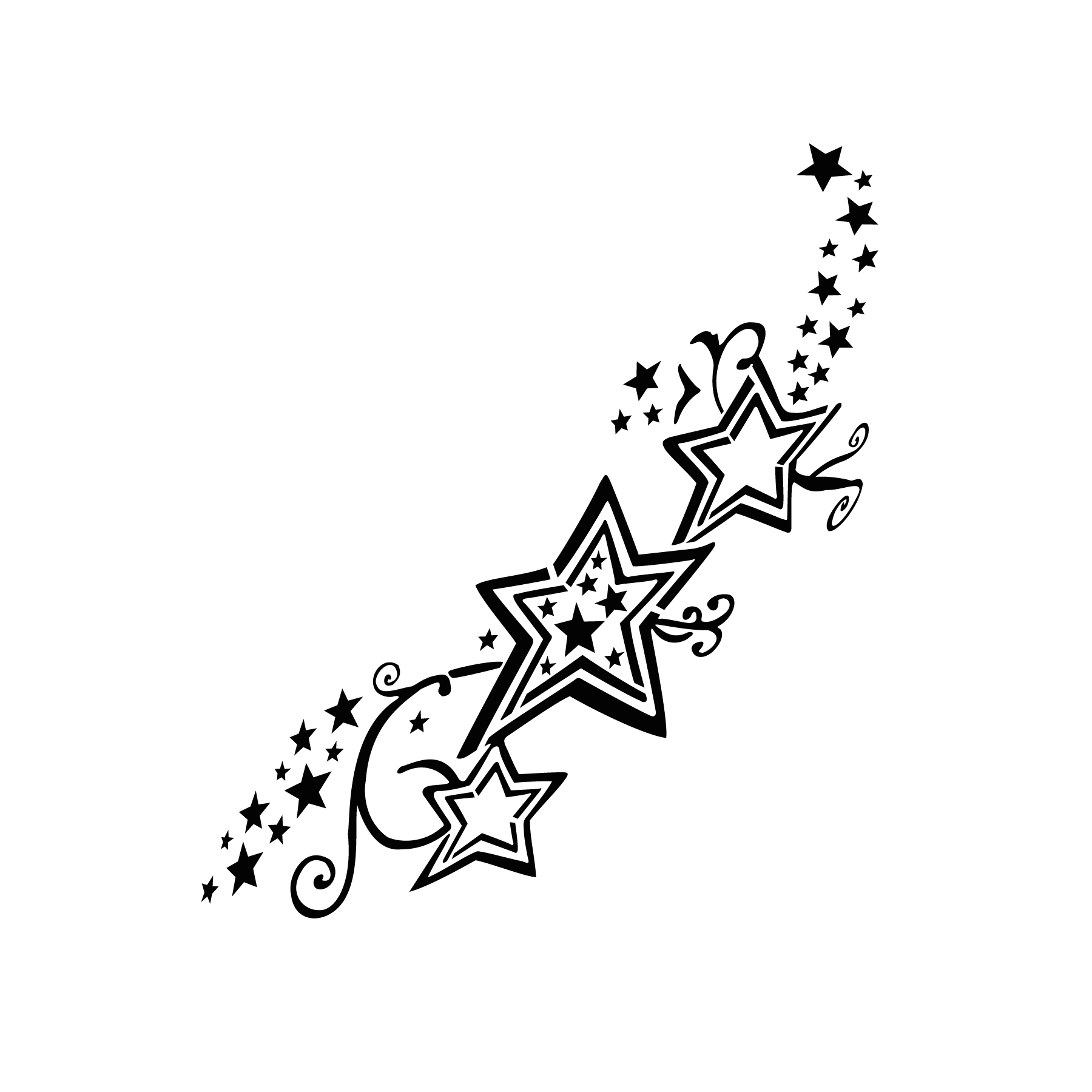 👉 Apportez mouvement et élégance à votre style avec ce pochoir tatouage éphémère d’étoiles filantes ornementales.