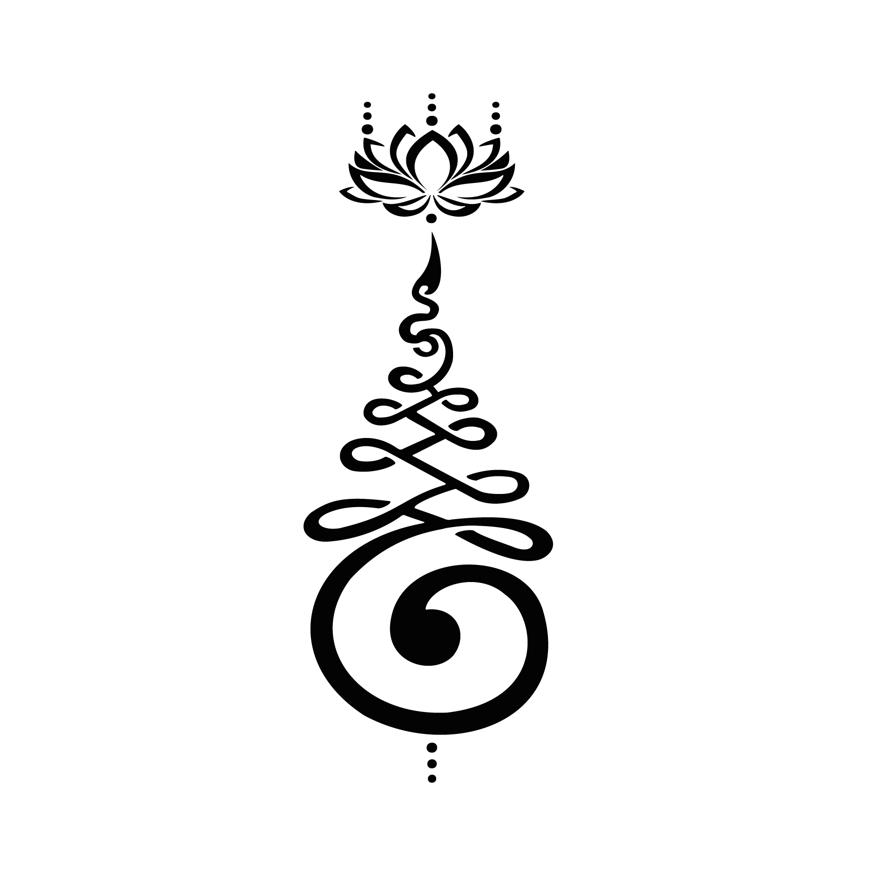 L’unalome symbolise le chemin vers l’éveil. La spirale représente les débuts, les détours et les difficultés, tandis que la ligne droite finale évoque la clarté et l’alignement.